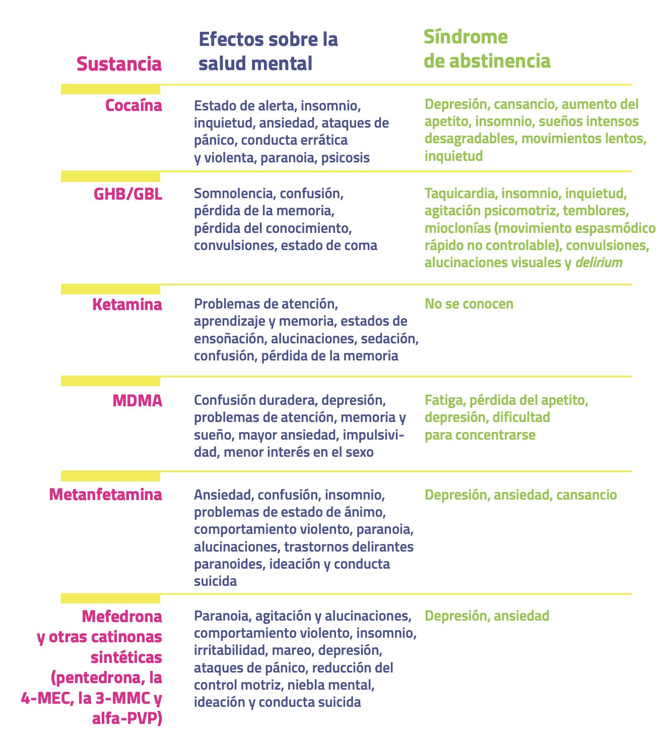 - Evita mezclar sustancias y reduce el uso de vías de consumo más riesgosas (anal o inyectada).